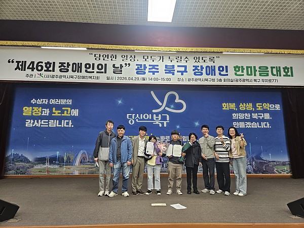 제46회 장애인의날 수상 페이지 정보 작성자 관리자 작성일26-04-20 17:23 조회53회 댓글0건 다음글 목록 본문 제46회 장애인의날을 맞이하여 센터 이용인 두분이 북구청장상, 북구의회의장상을 받으셨습니다. 많은 축하바랍니다. 다음글 목록