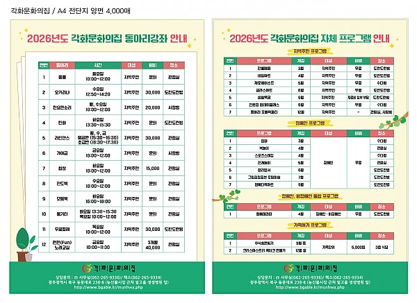 26년도 동아리활동 및 프로그램 안내 페이지 정보 작성자 정관용 작성일26-01-16 17:02 조회194회 댓글0건 이전글 다음글 목록 본문 26년도 동아리 전체 활동 안내 및 프로그램 안내합니다. 이전글 다음글 목록