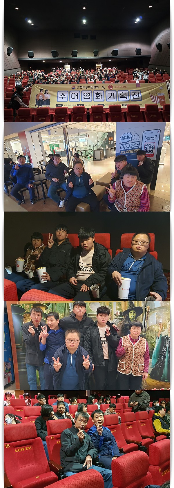 수어영화 관람(롯데시네마) 페이지 정보 작성자 관리자 작성일25-12-08 11:46 조회86회 댓글0건 이전글 다음글 목록 본문 11월 11일 광주 롯데백화점에 위치한 롯데시네마에서 수어영화 관람을 다녀왔습니다. 광주지역 장애인들과 함께 즐겁게 영화관람하고 왔습니다.^^ 이전글 다음글 목록