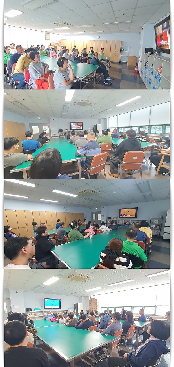 10월 안전교육으로 전열기기, 화재감지 대피 요령, 산업재해에 관한 안전교육을 실시하였으며